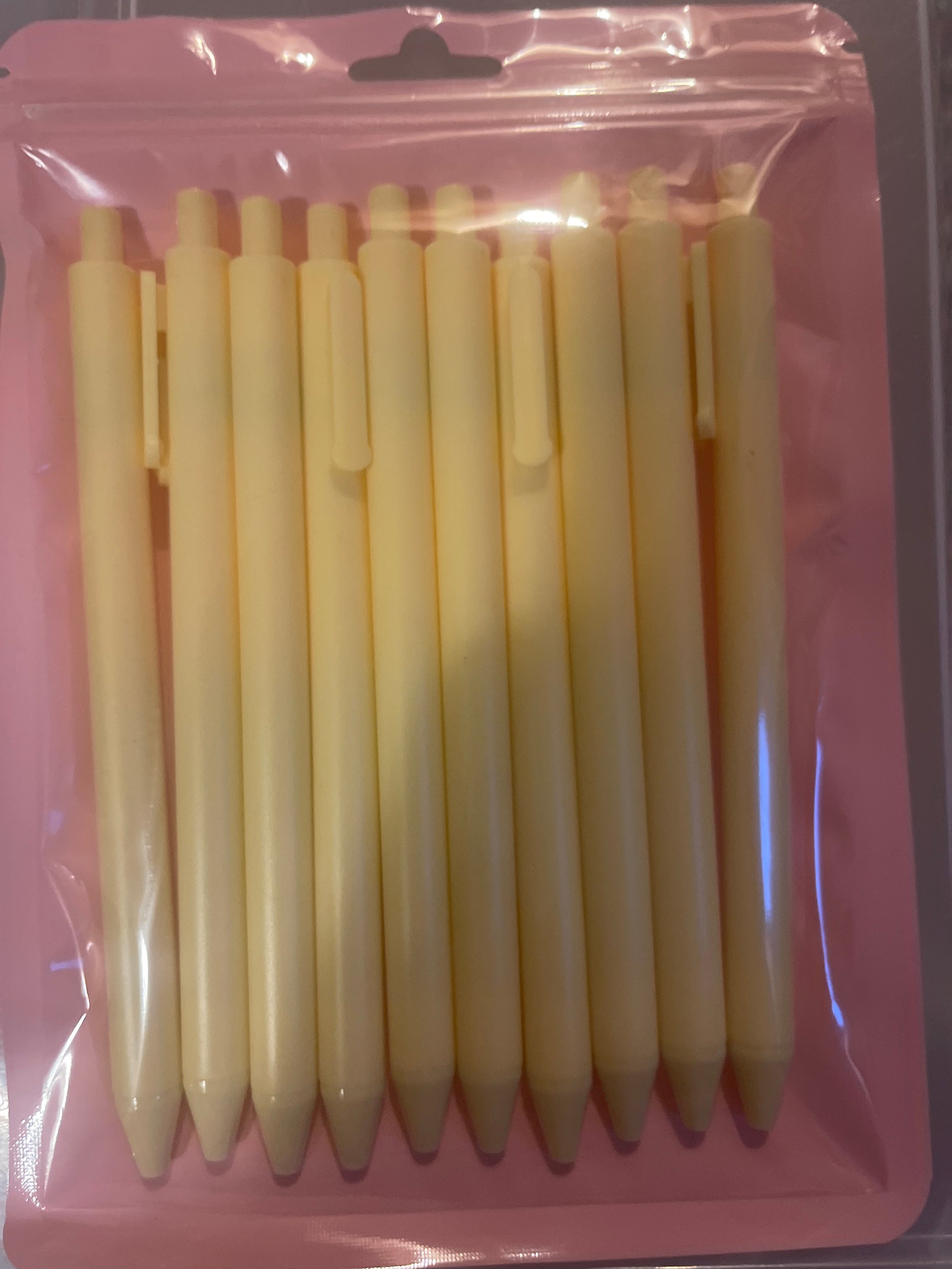 DIY 10 pack various colors plastic pens claimed on live sales. These pens can be used for your DIY projects for multiple uses like glitter and pen wraps (not included)